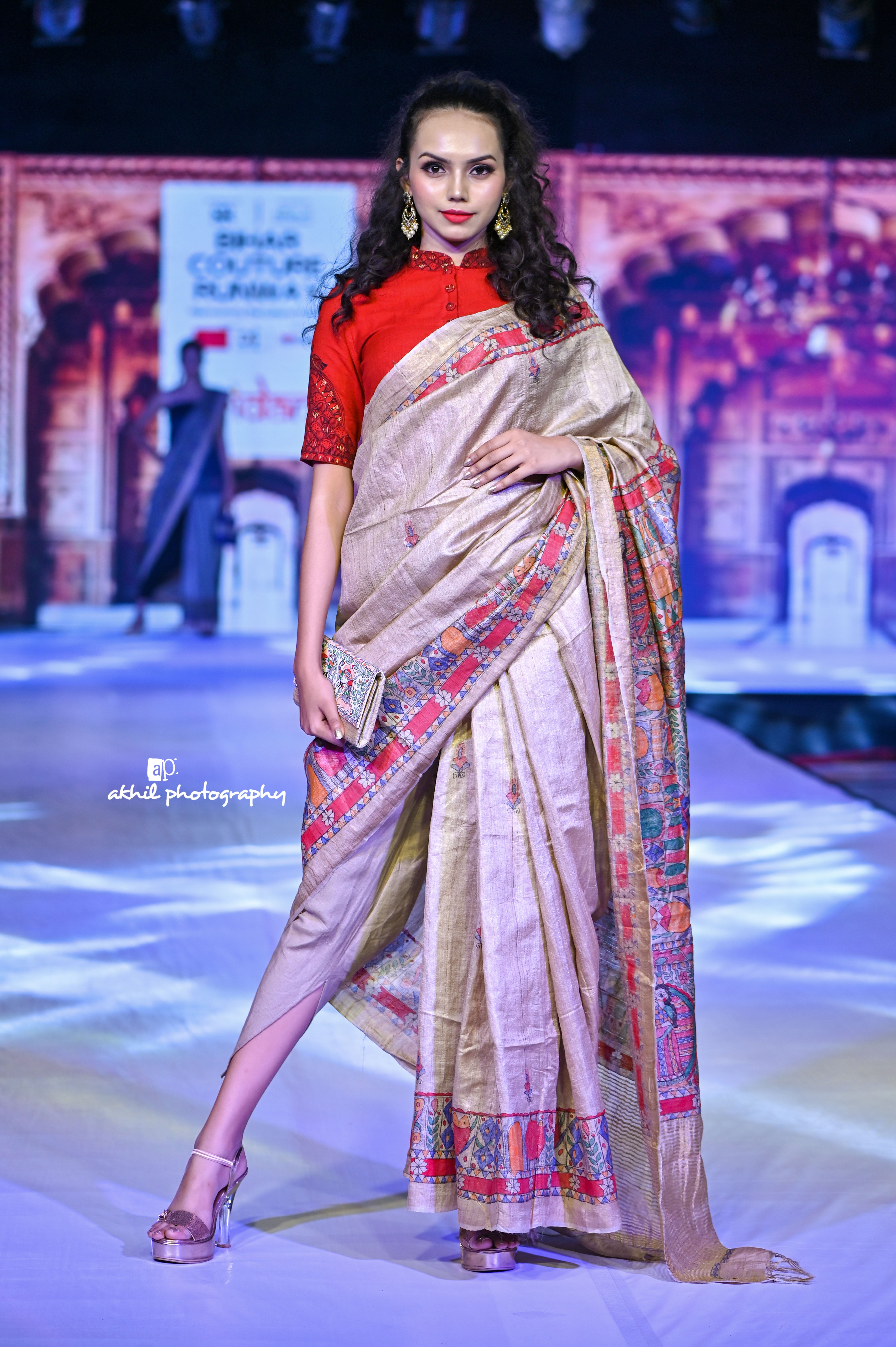 Each collection brings together timeless artistry and modern elegance, from Madhubani-inspired sarees to intricate embroidered pieces, presenting India’s heritage in style.